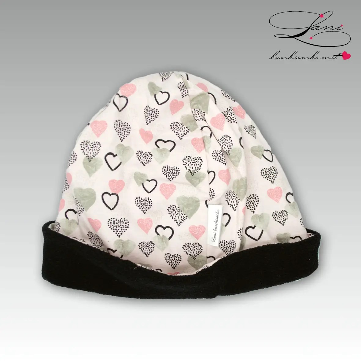 Mütze/Beanie für Kleindkinder von Lani buschisache Hellikon Fricktal Babygeschenke GeburtsgeschenkeBeanie «Herz» KU 48 cm (warm)