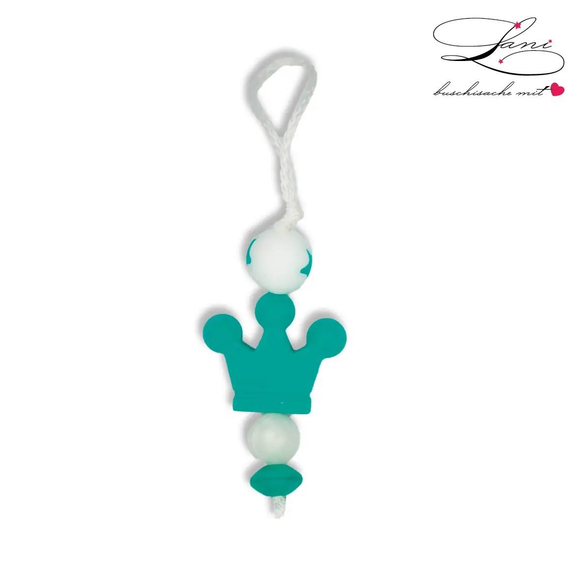 Reissverschlusshelfer aus Silikonperlen, Lani buschisache Hellikon, handgemacht ind er Schweiz.Reissverschluss-Helfer Krone grün